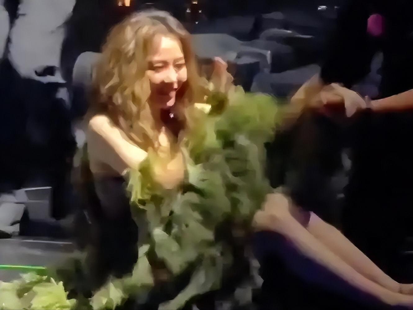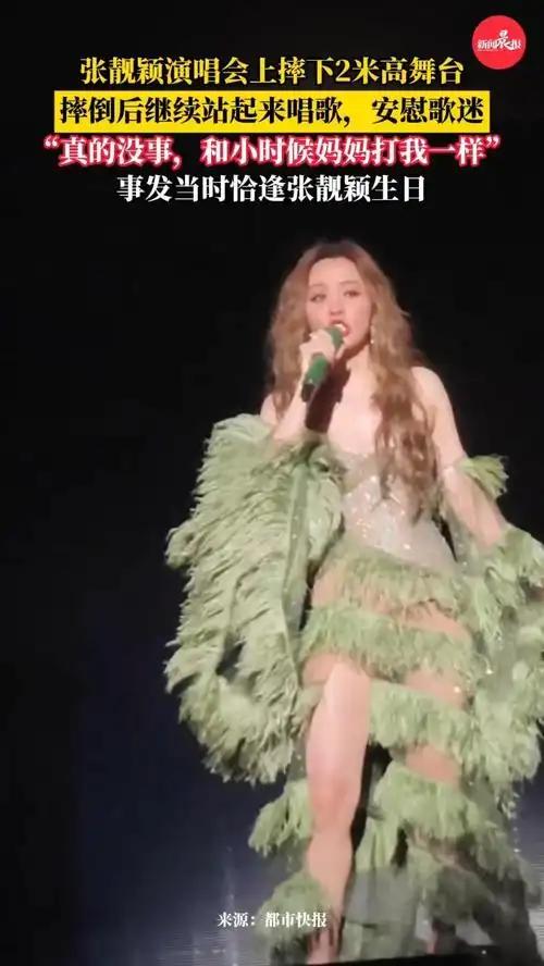 在现场歌迷录制的视频中,可以清楚地看到张靓颖从2米多高的台子上摔了下去。