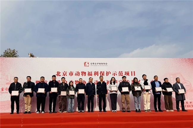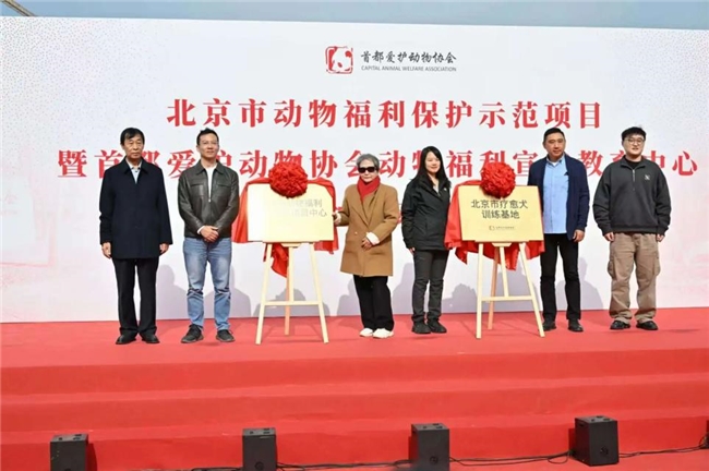 首都爱护动物协会终身名誉会长秦肖娜、调良宠物学校何军、北京市众安公益基金姚炎彬、爱德基金会钟晓杰、阿里巴巴公益王超然、天井村书记许仲义共同为“北京市动物福利保护示范项目、北京市疗愈犬训练基地”同时揭牌成立。